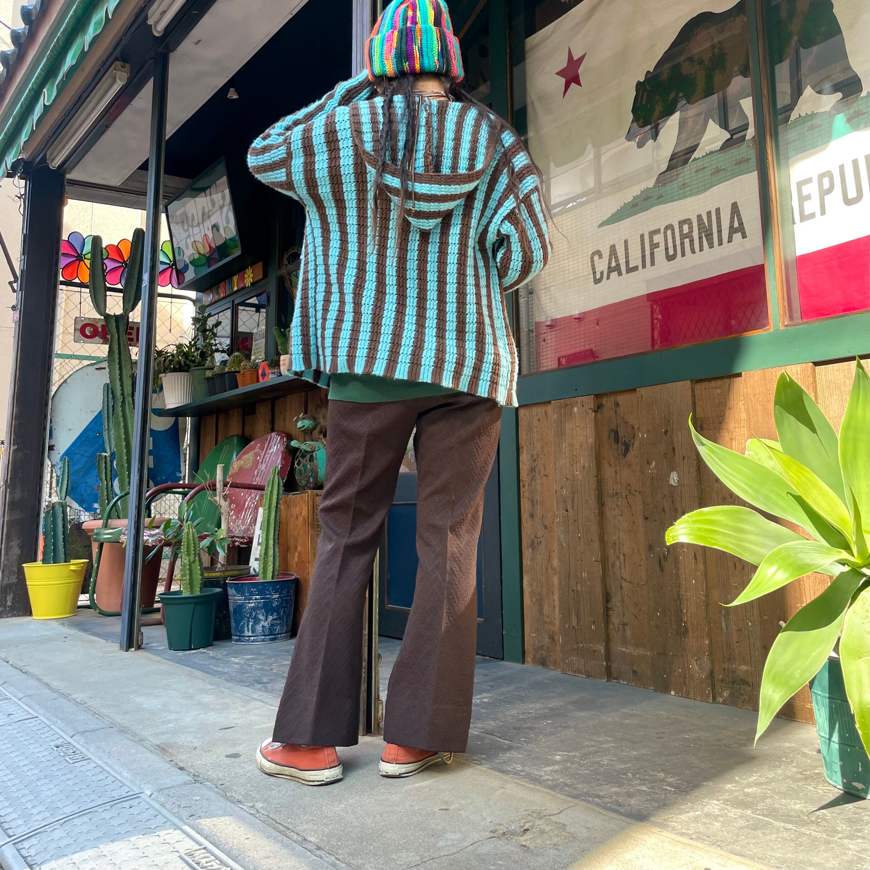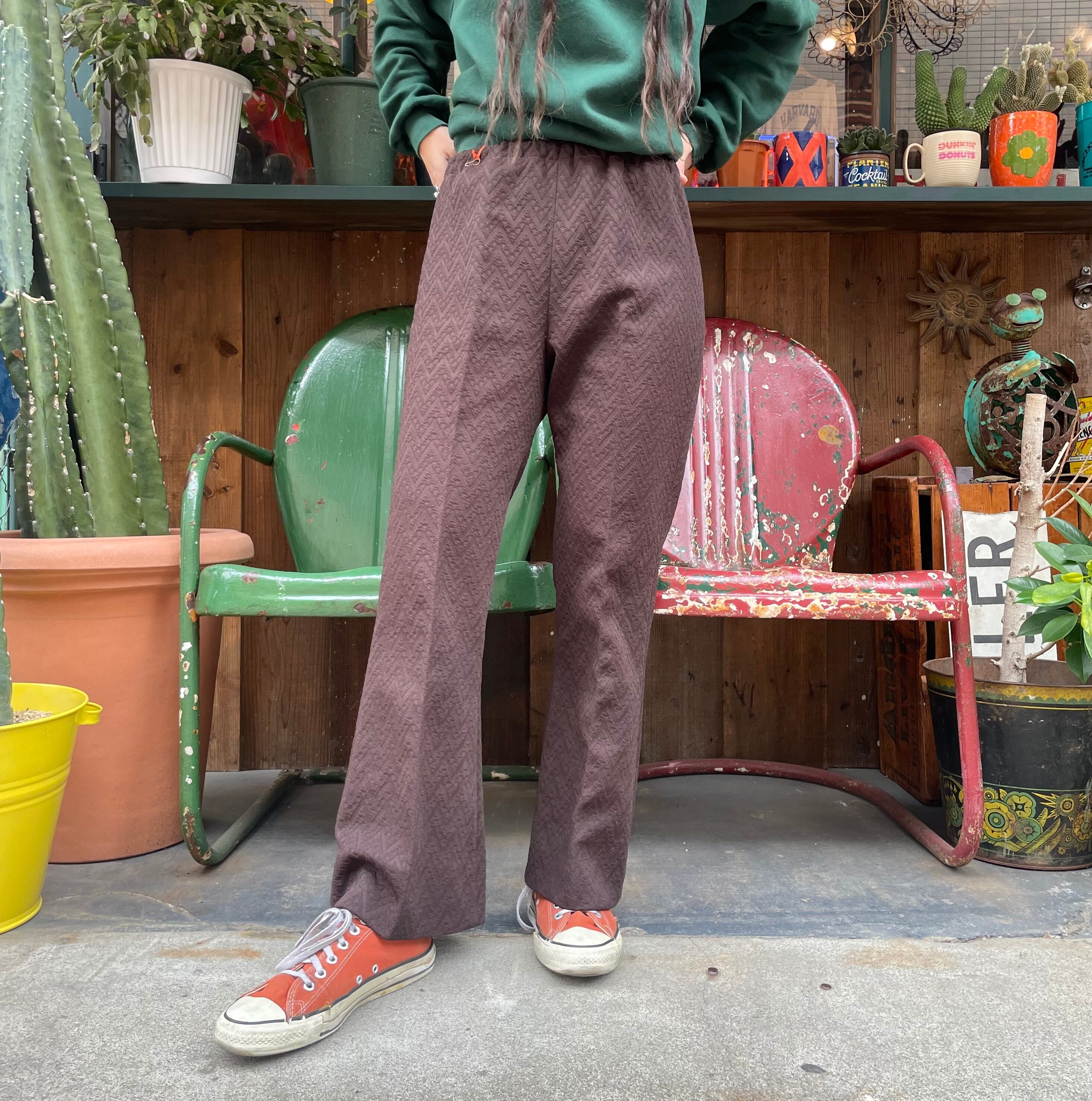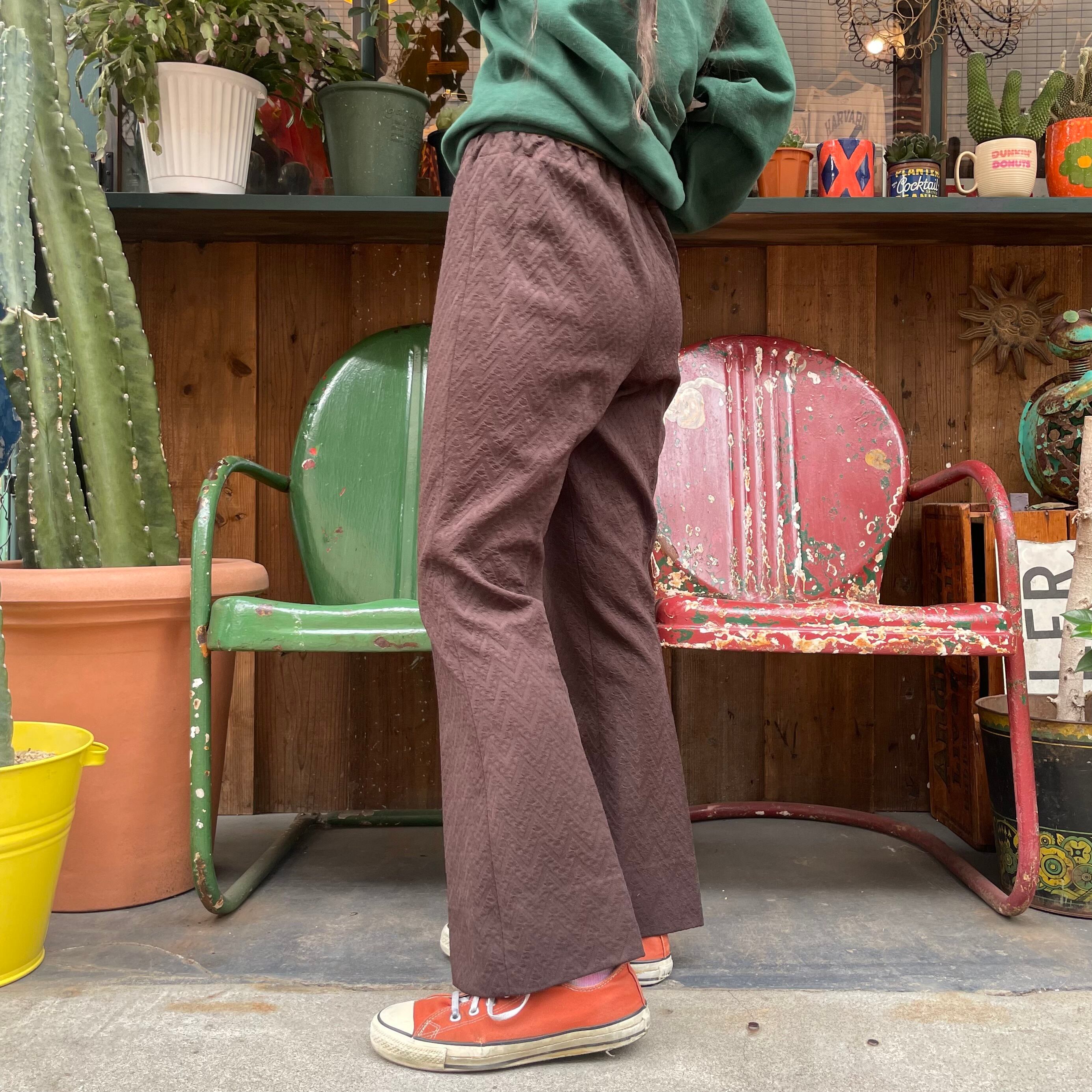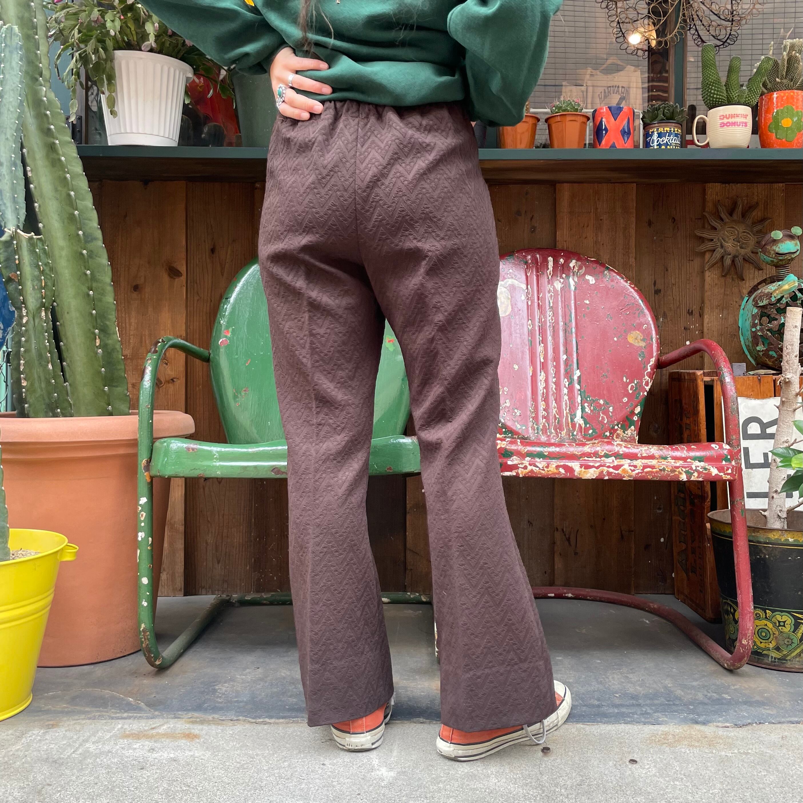 焦げ茶色が大人っぽくてかっこいい雰囲気のフレアイージーパンツです。