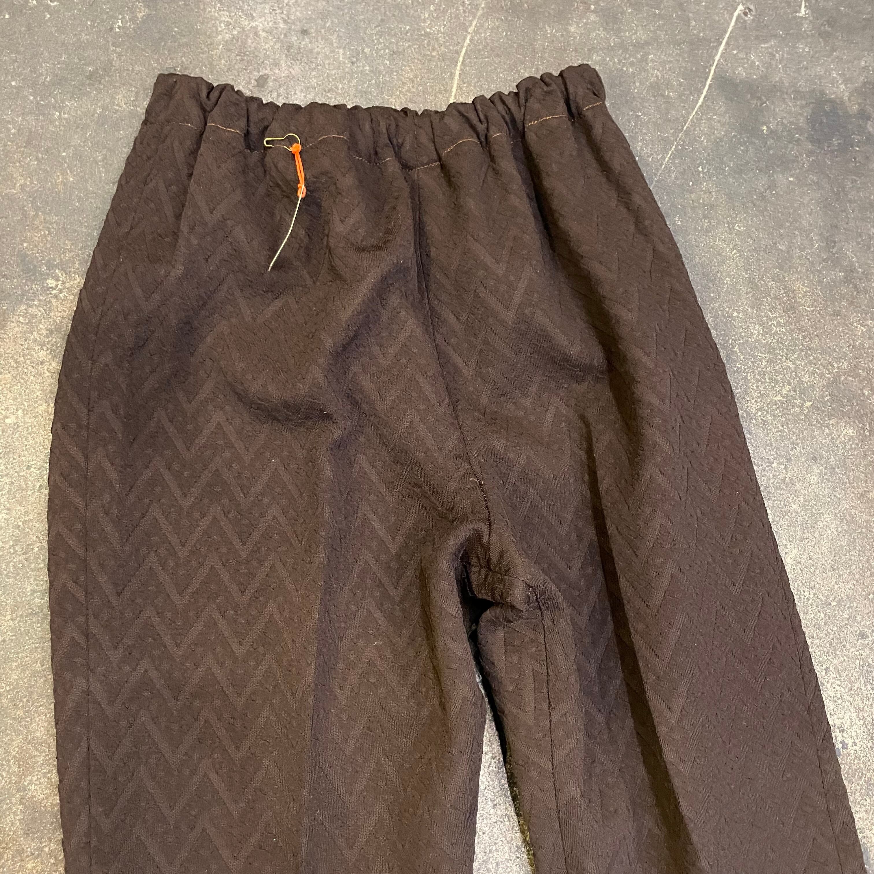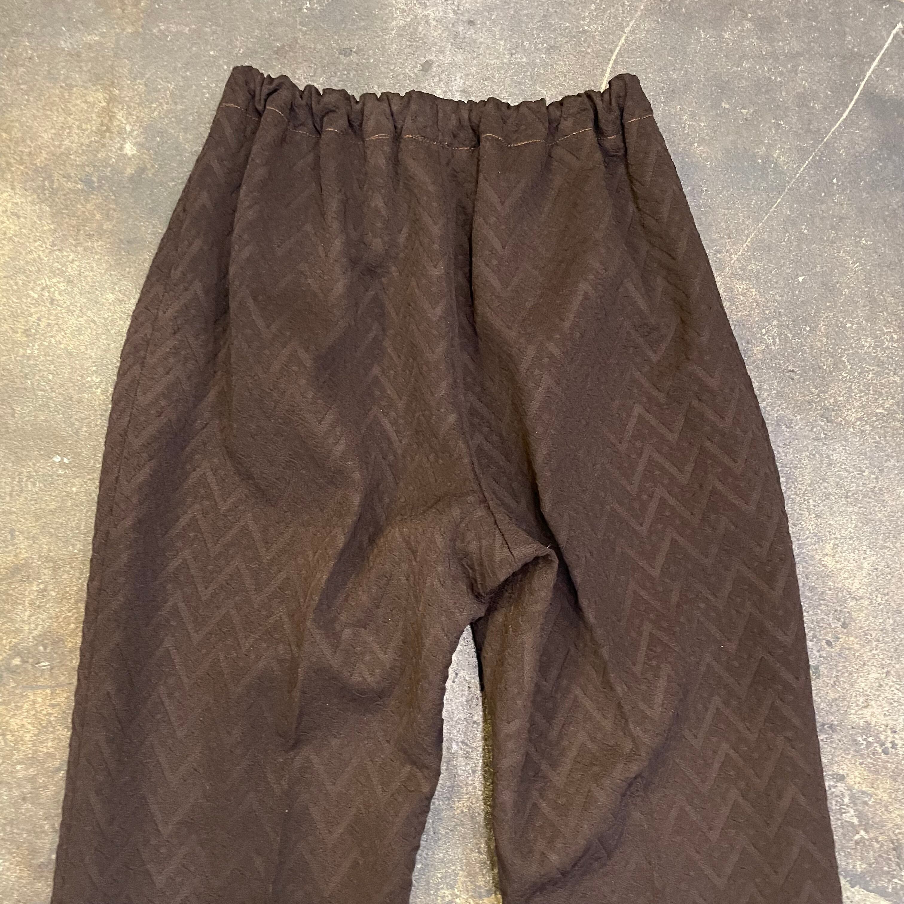 よく見ると凹凸のある織りの模様がギザギザしていてかわいい一着です。軽くて動きやすく、ウエストはゴムで楽ちん、洗濯も普通にして頂けてすぐ乾くという扱いやすい素材で嬉しいですね。