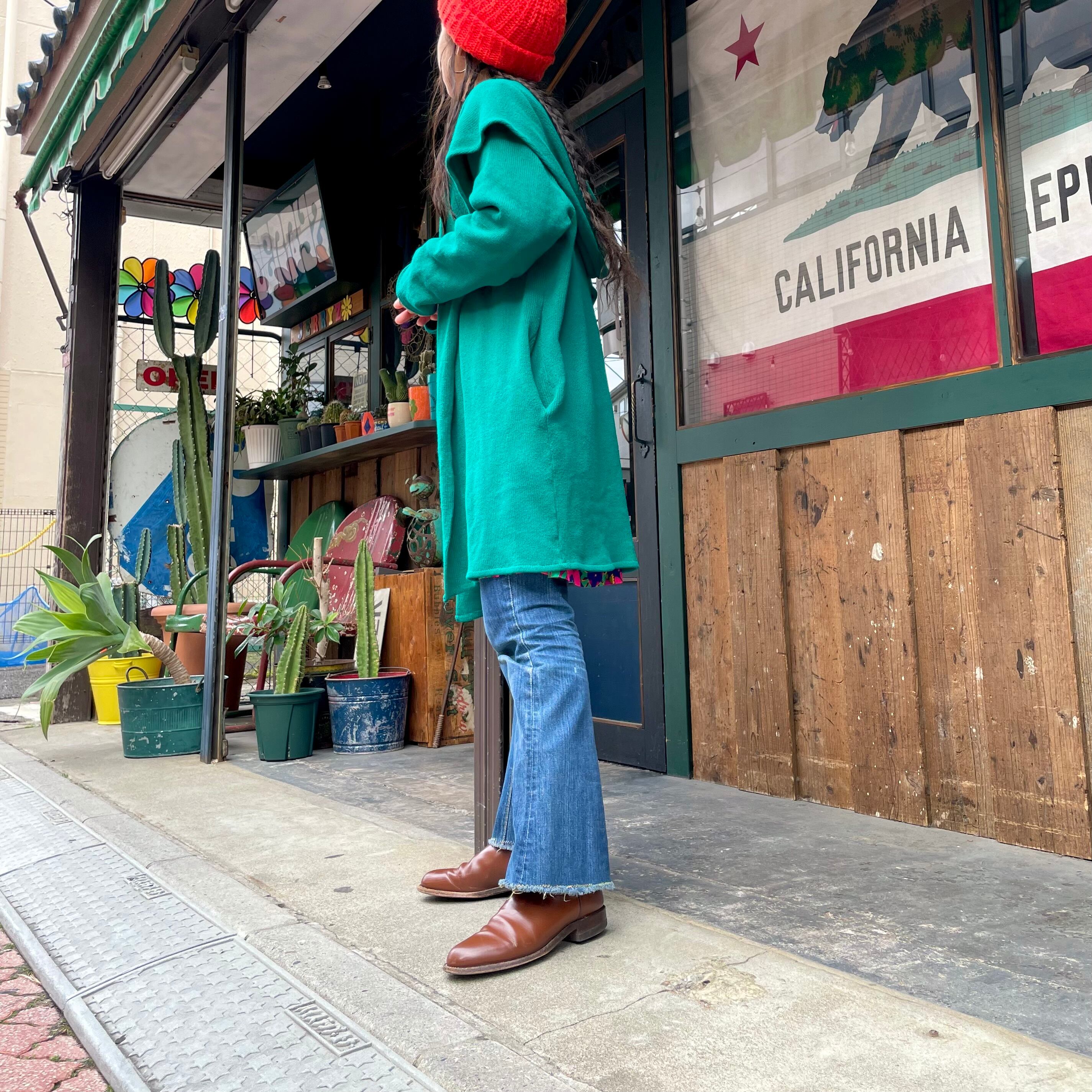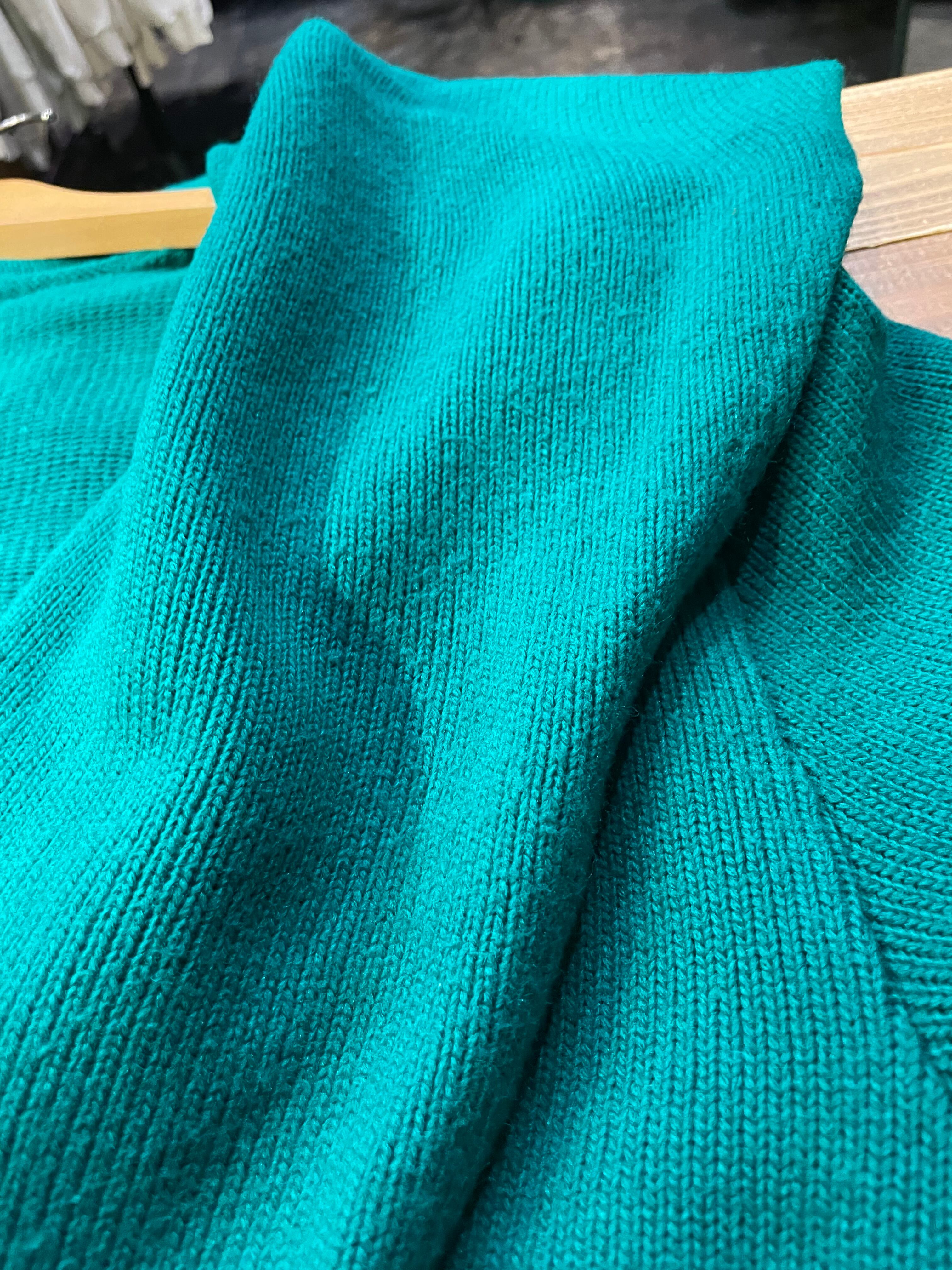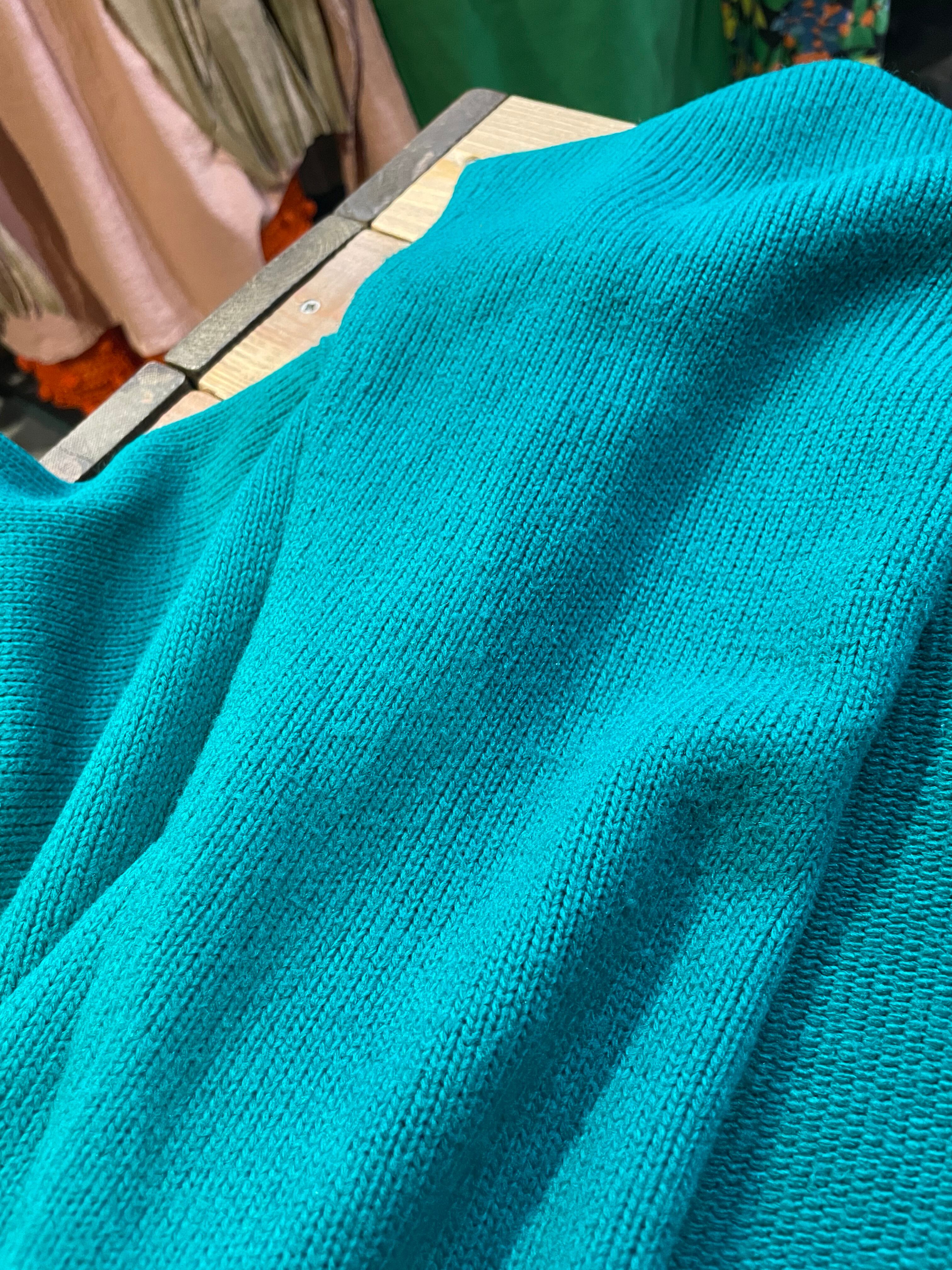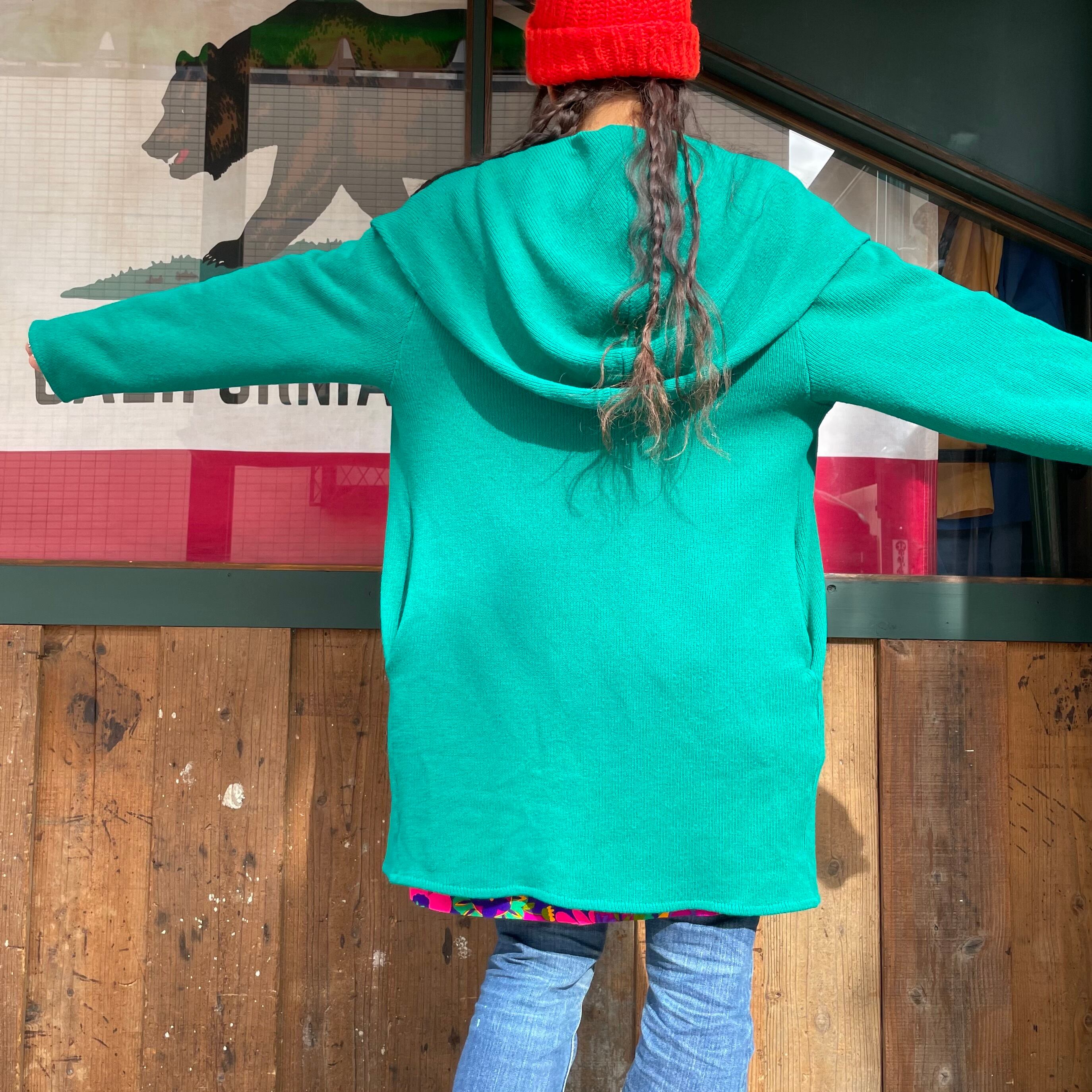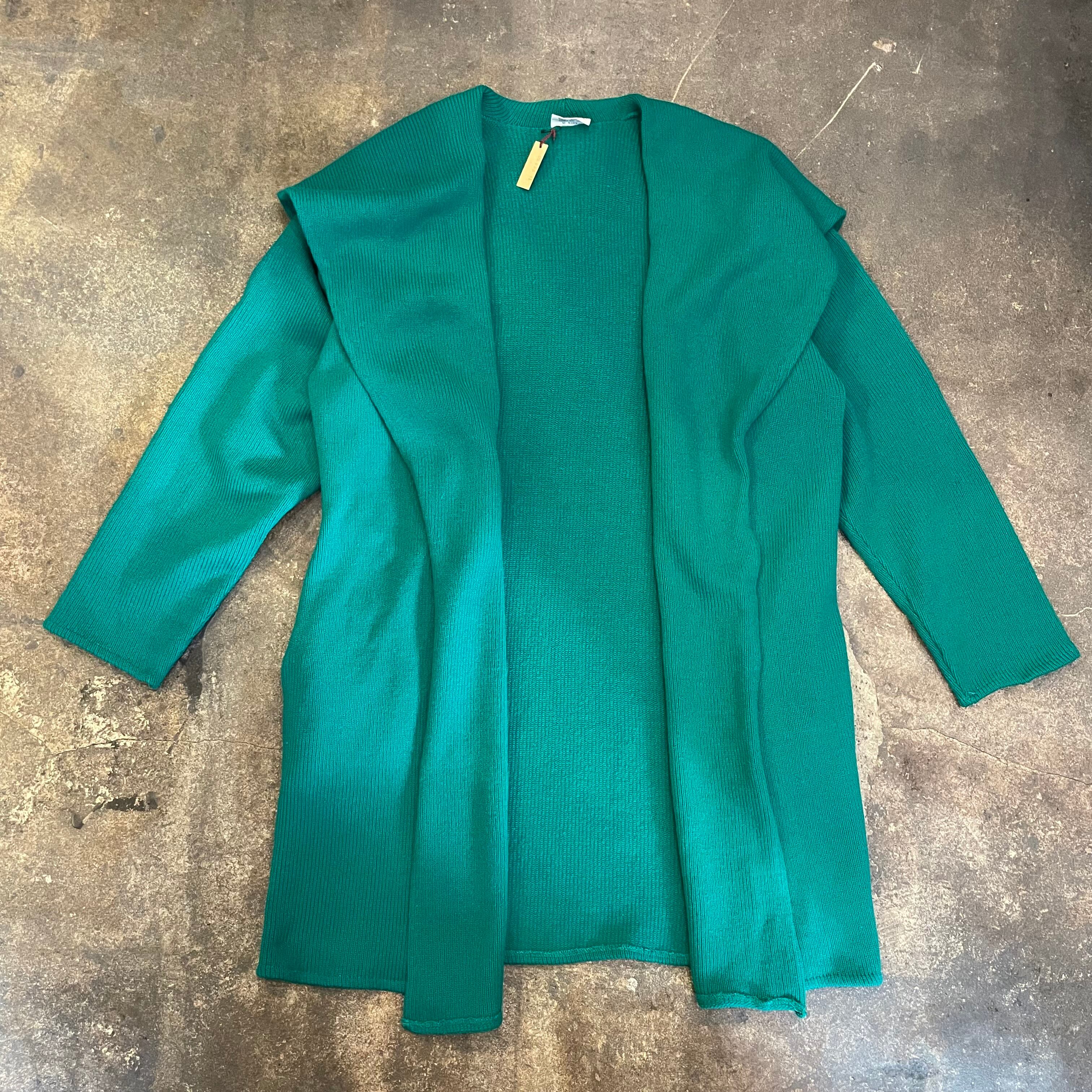 エメラルドグリーンな雰囲気のきれいな緑がかわいい、ニットガウンです。