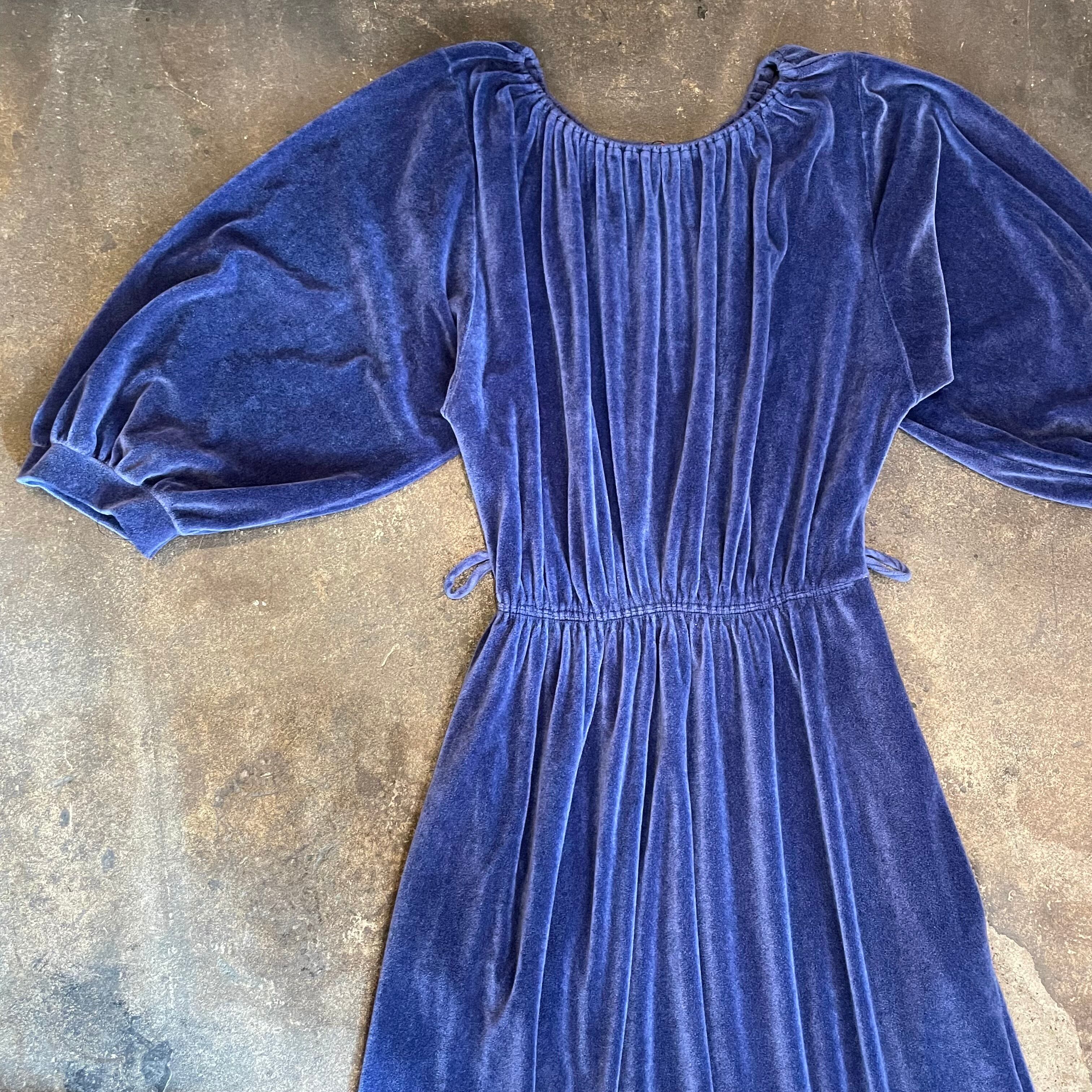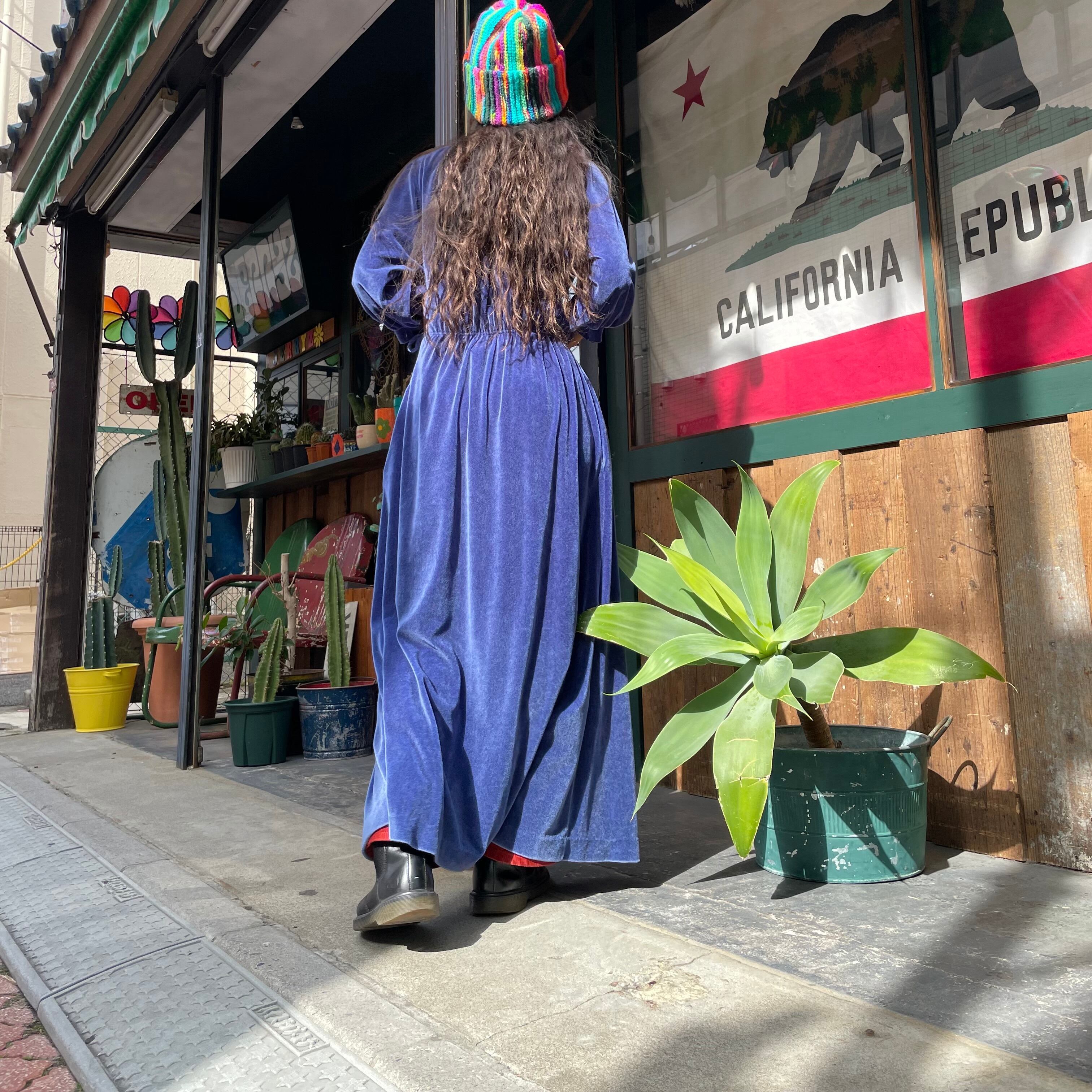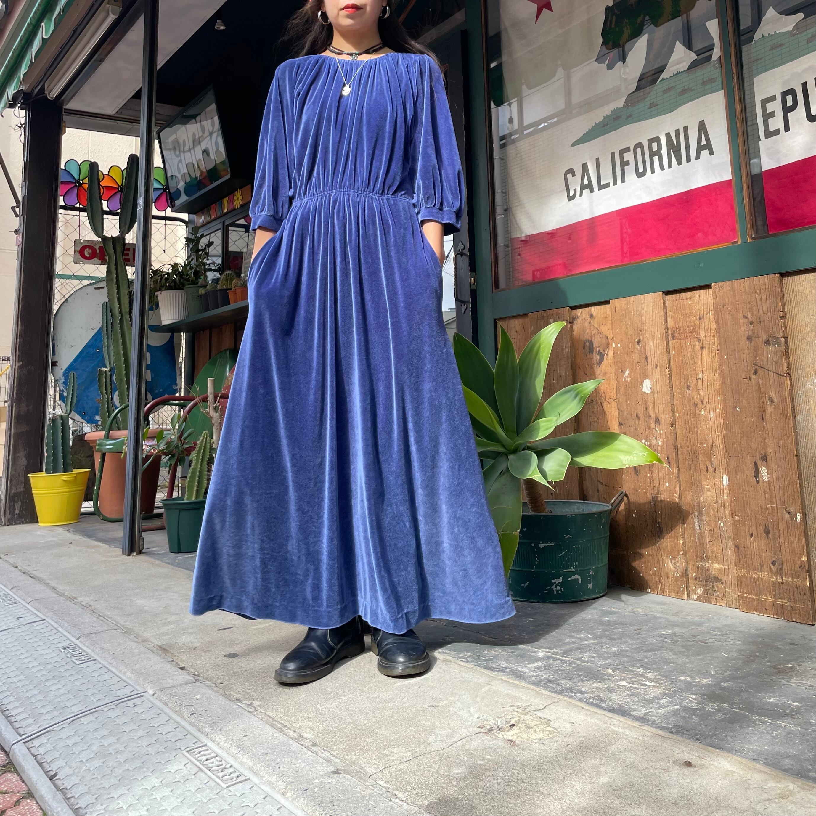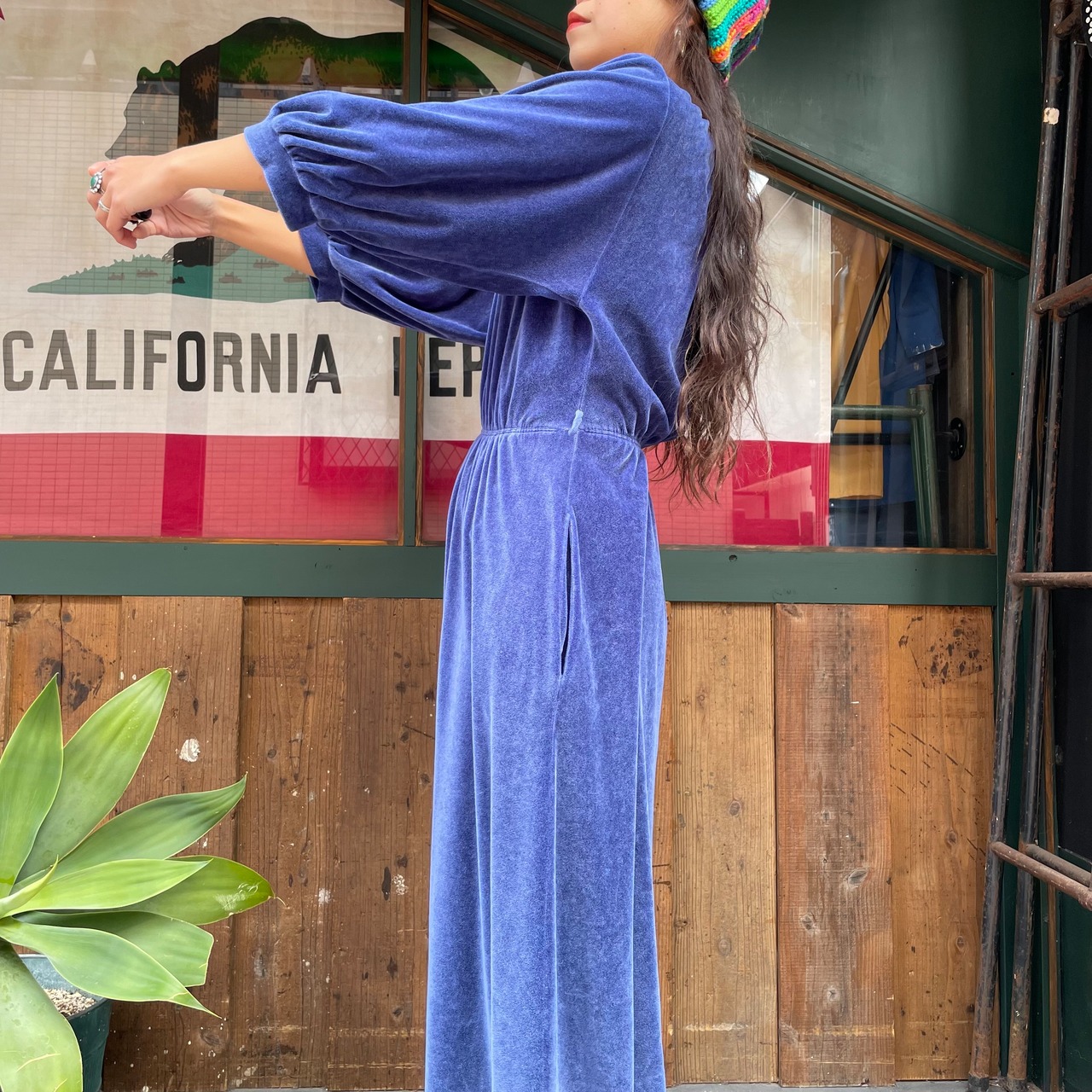 ブルーベリーのような絶妙なブルーがかわいいベロアのワンピースです。