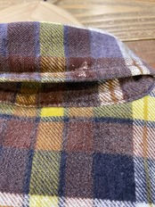 茶色黄色な色ベースでチョコバナナカラーなところがかわいいプリントネルシャツです。