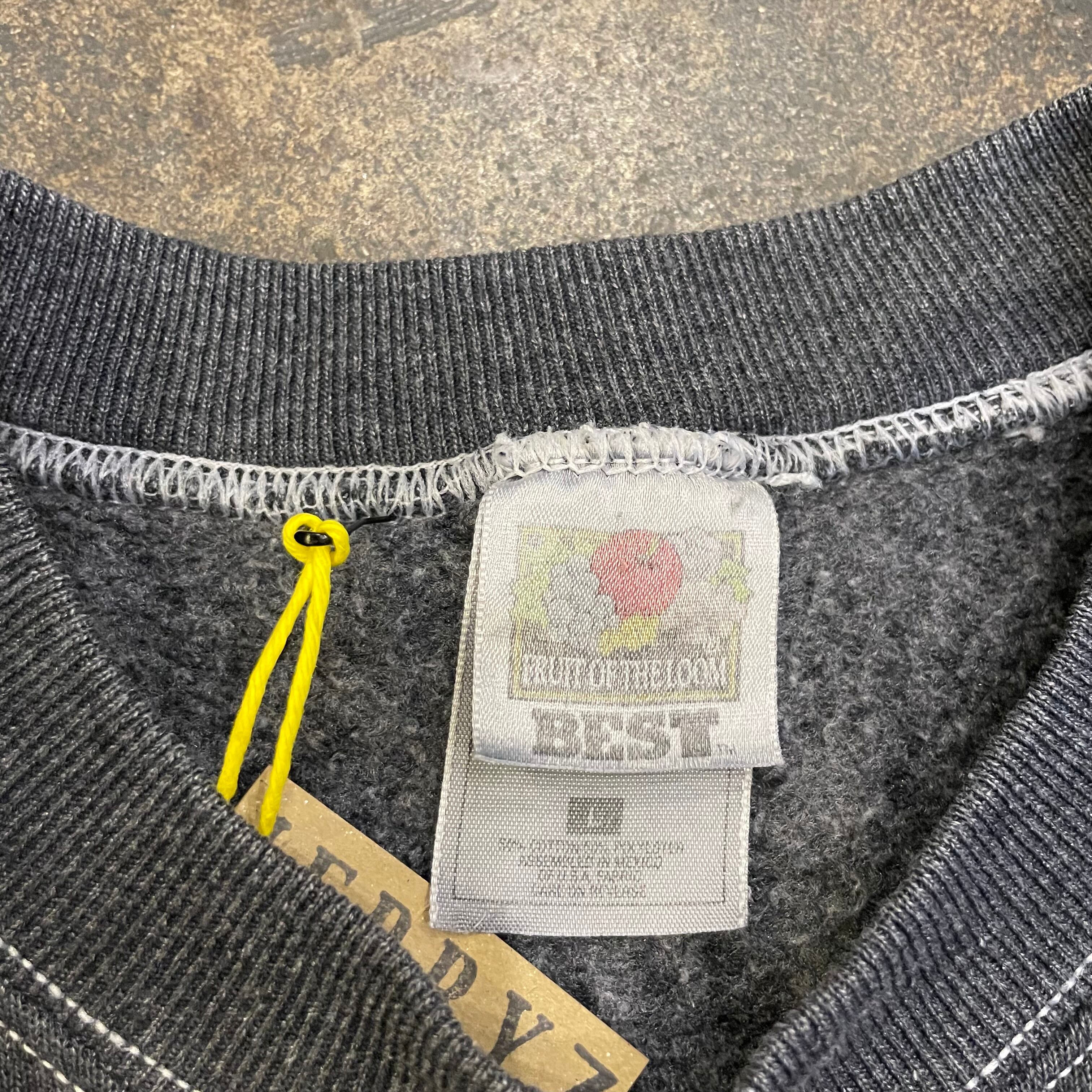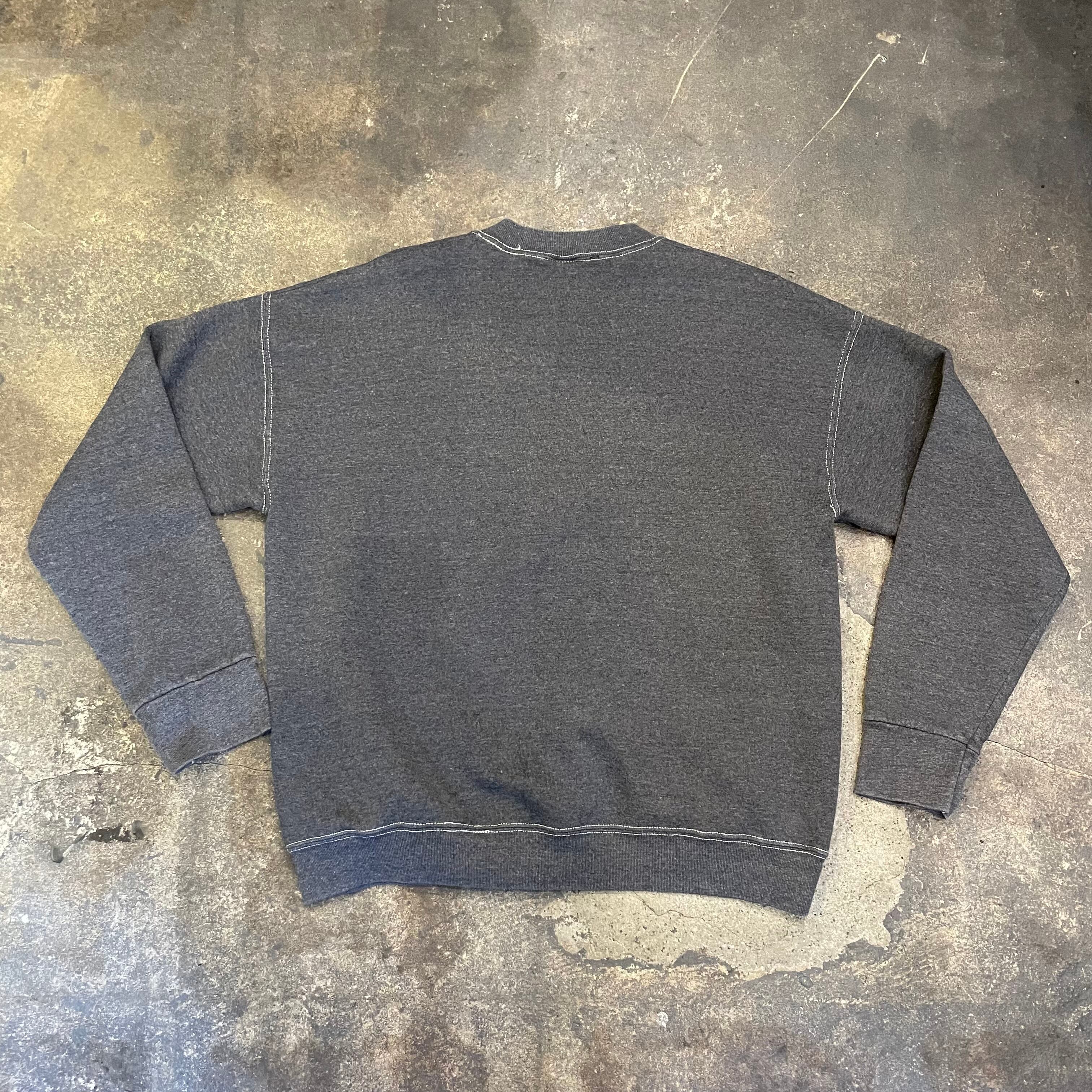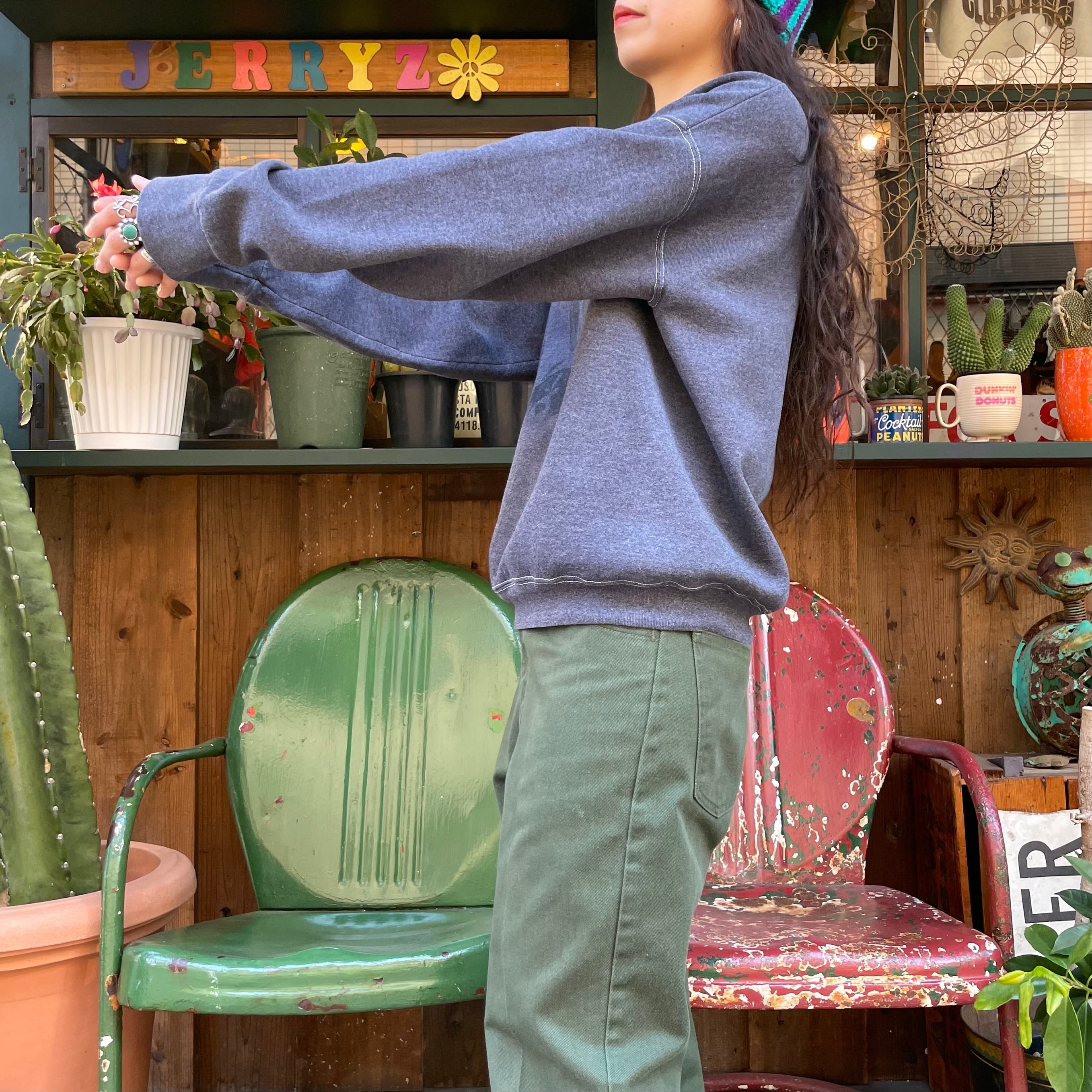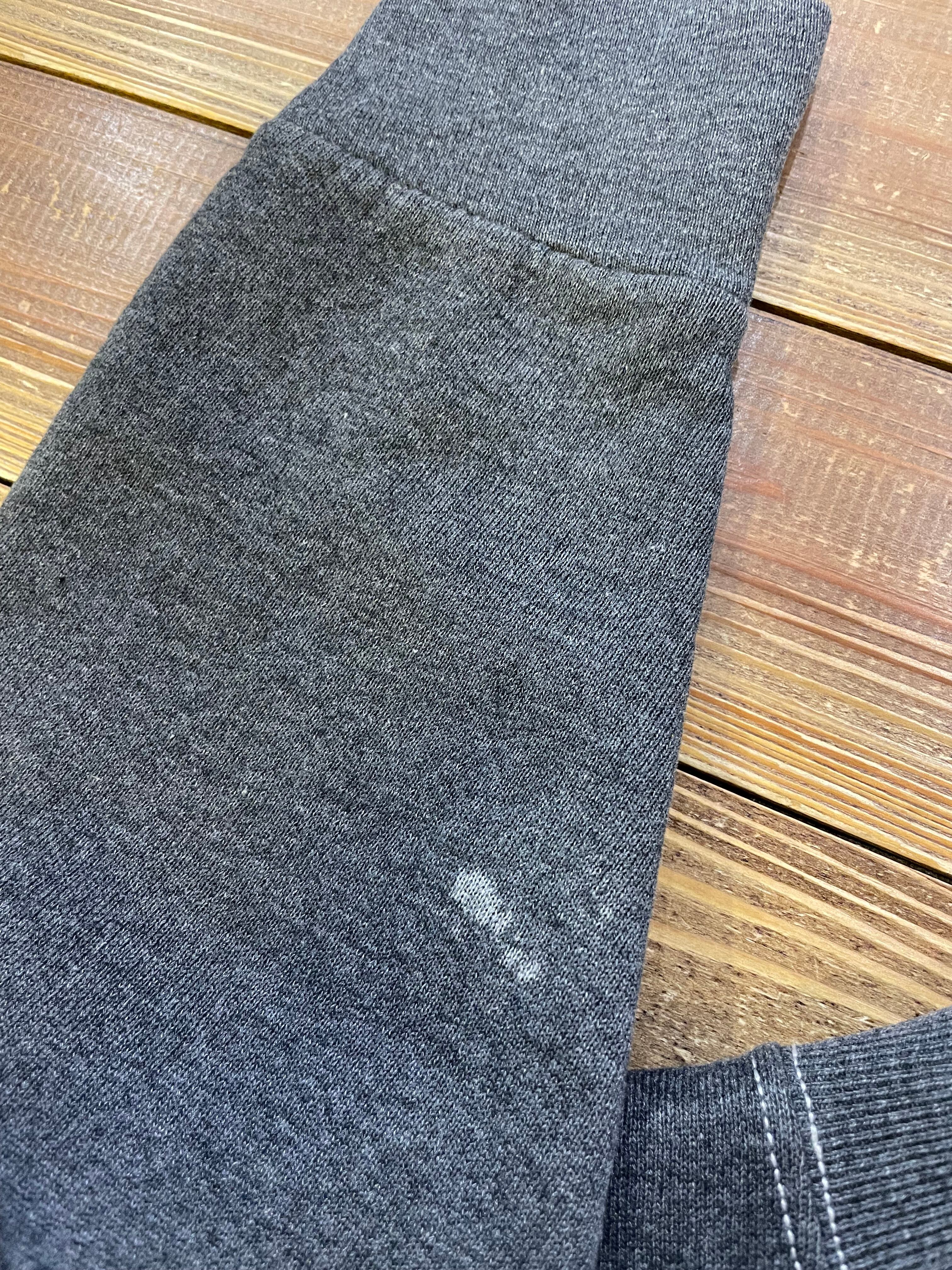 キャバリアのプリントがかわいいプリントスウェットです。後染めのグレーでプリントがうっすらしか見えない感じや糸が染まらず白いステッチになっていて雰囲気があってかわいいですね。