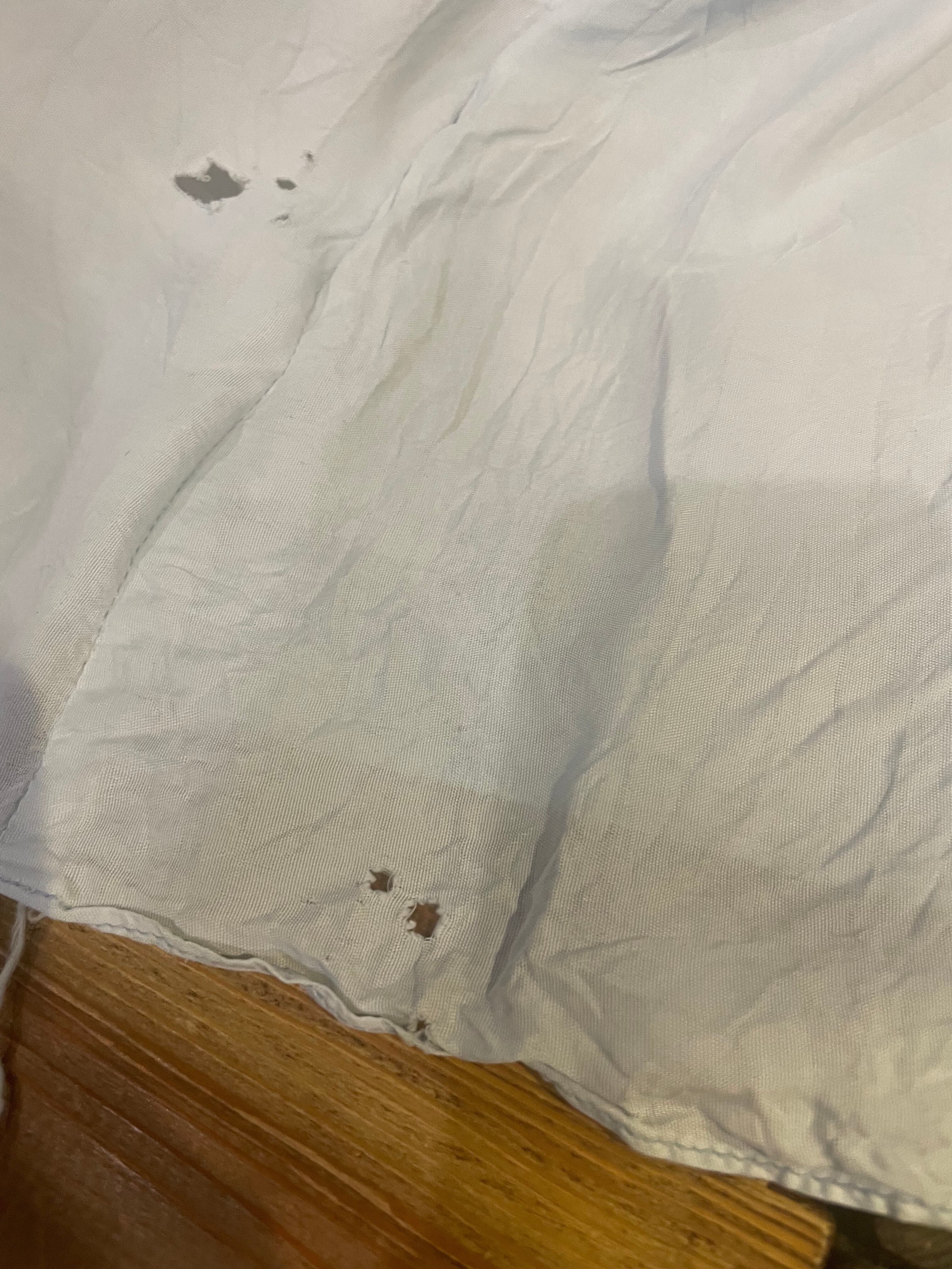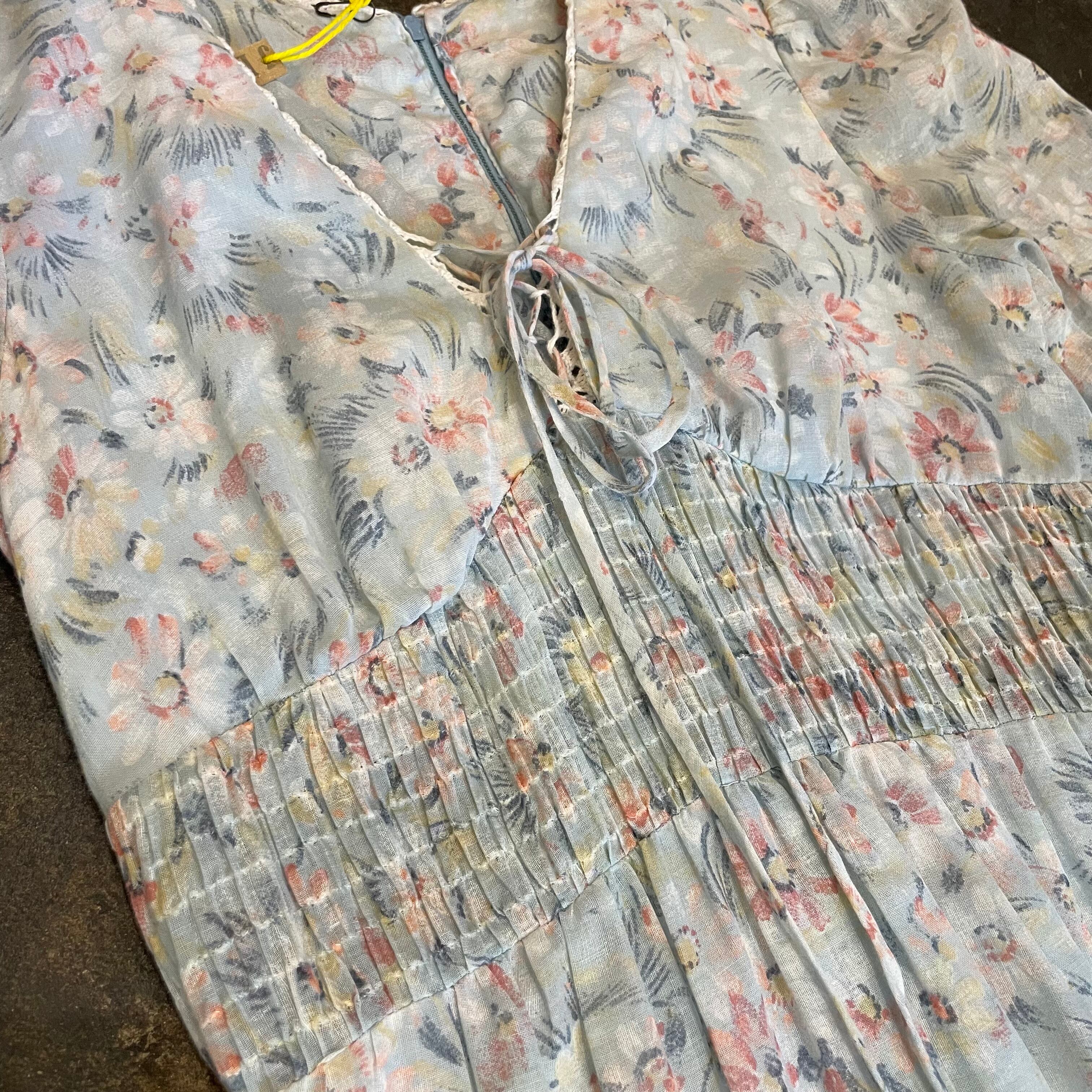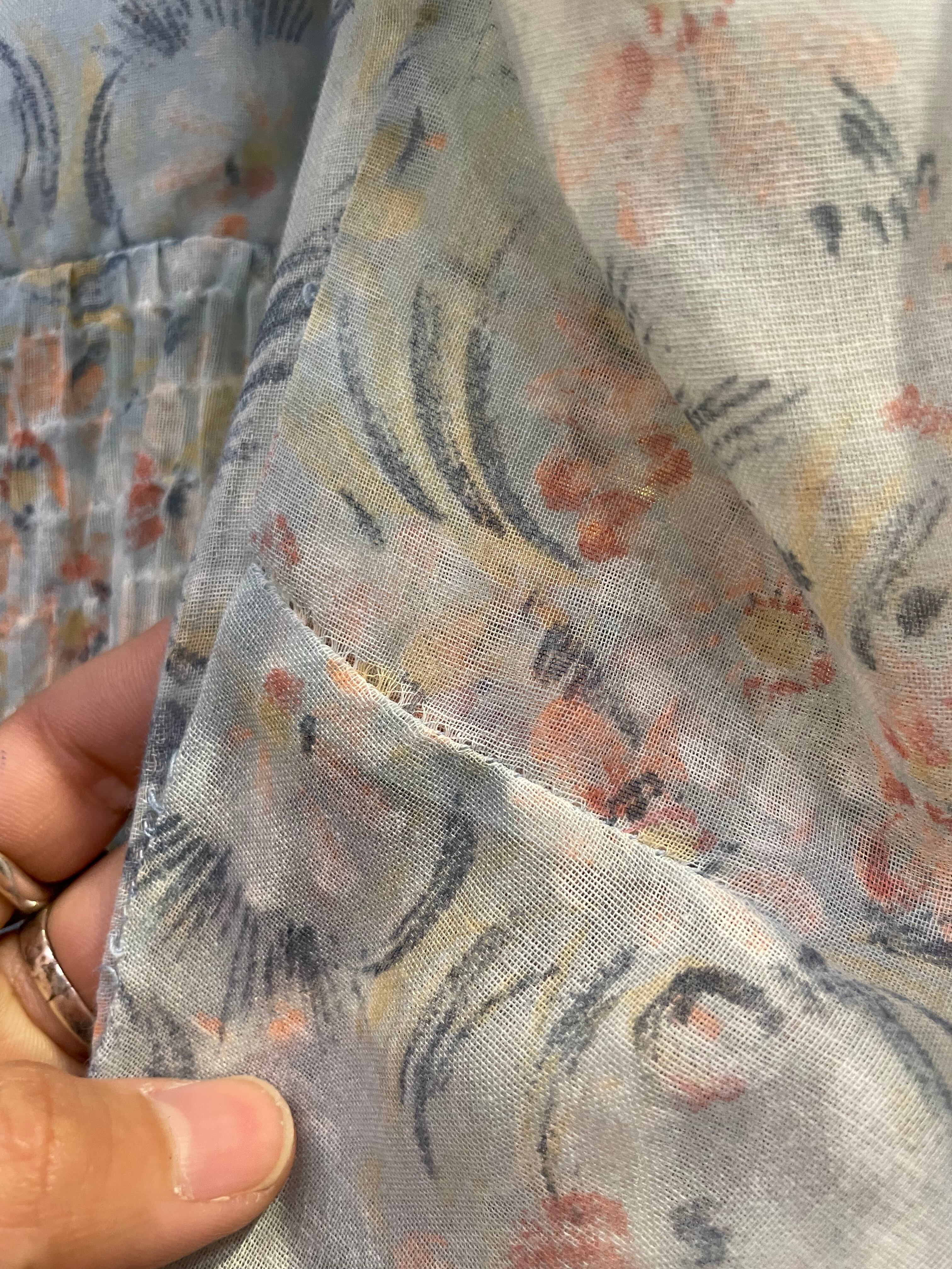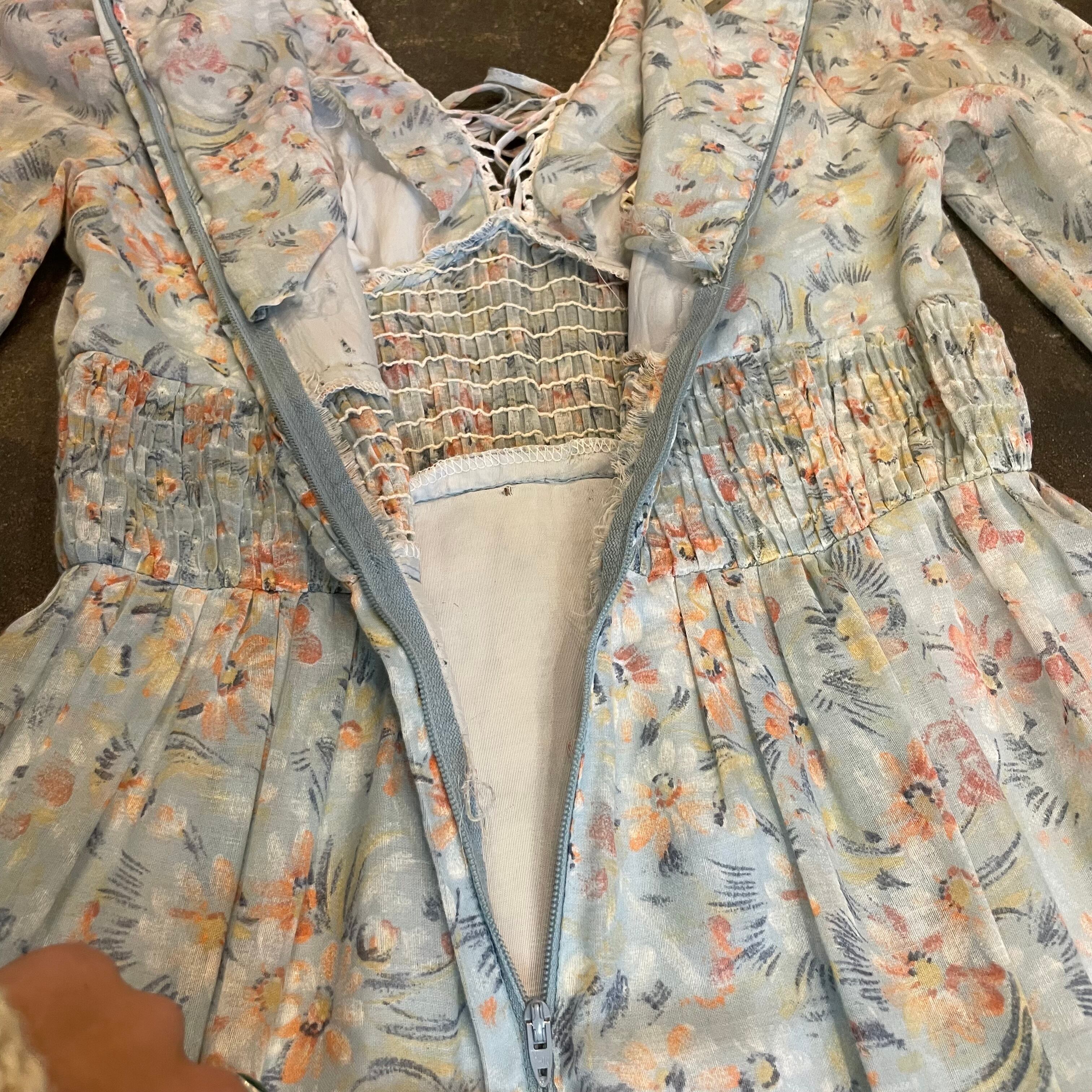 シースルーな生地感が春らしい爽やかな70年代頃のワンピースです。淡い水色が可憐な雰囲気で美しいですね。